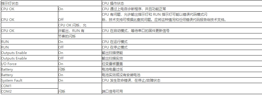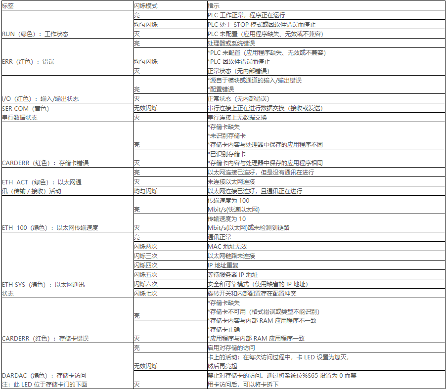 2、施耐德 P34 系列 CPU 模块 LED 指示不同颜色及闪烁方式表示的意思