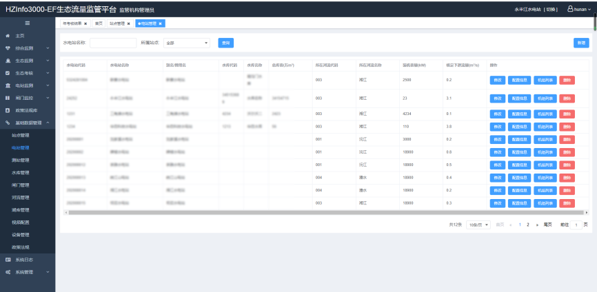基础信息管理(静态数据):系统提供流域、区域、监测站等相关信息管理。